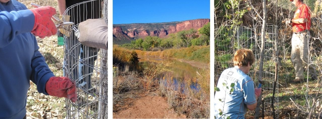 Volunteers will help protect cottonwood trees by installing protective cages. This involves carrying materials—including T-posts, fencing, and tools—to designated sites, securing up to four posts per tree, and wrapping them with fencing. These efforts will safeguard young and mature cottonwoods from increased beaver activity, particularly following recent flooding events that have allowed beavers to access previously protected trees.