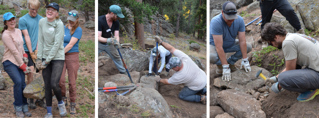 After a major trail reroute in 2018, some hikers have been cutting switchbacks along the middle section of the Rooney Valley Trail to avoid bike traffic and take a more direct route. We will be responding to these hikers recreating patters helping build rock steps that create a designated pedestrian bypass.