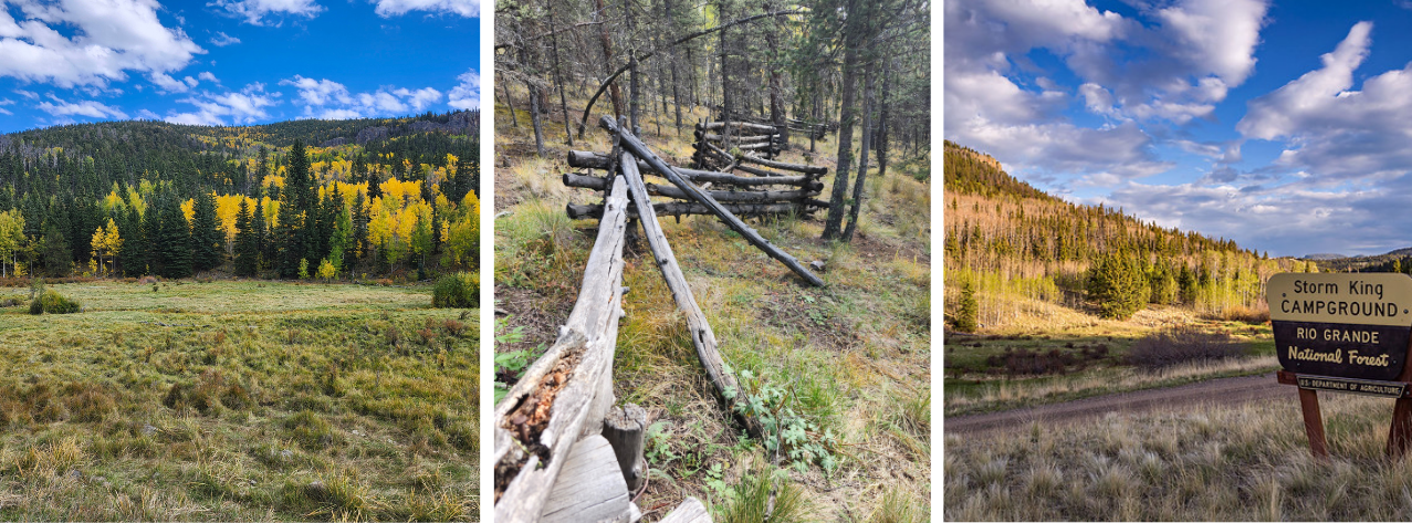 This picturesque Colorado campground is located on the Saguache Ranger District, an hour drive from the town of Del Norte. The campground is surrounded by aspen trees, which will be in peak fall colors during the weekend- which is why it was scheduled accordingly! Nothing better than leaf peeping in the crowd-less San Luis Valley during this time of year. The campground is situated at the base of Storm King Mountain, amid rolling, rocky hills along the Middle Fork of Carnero Creek.