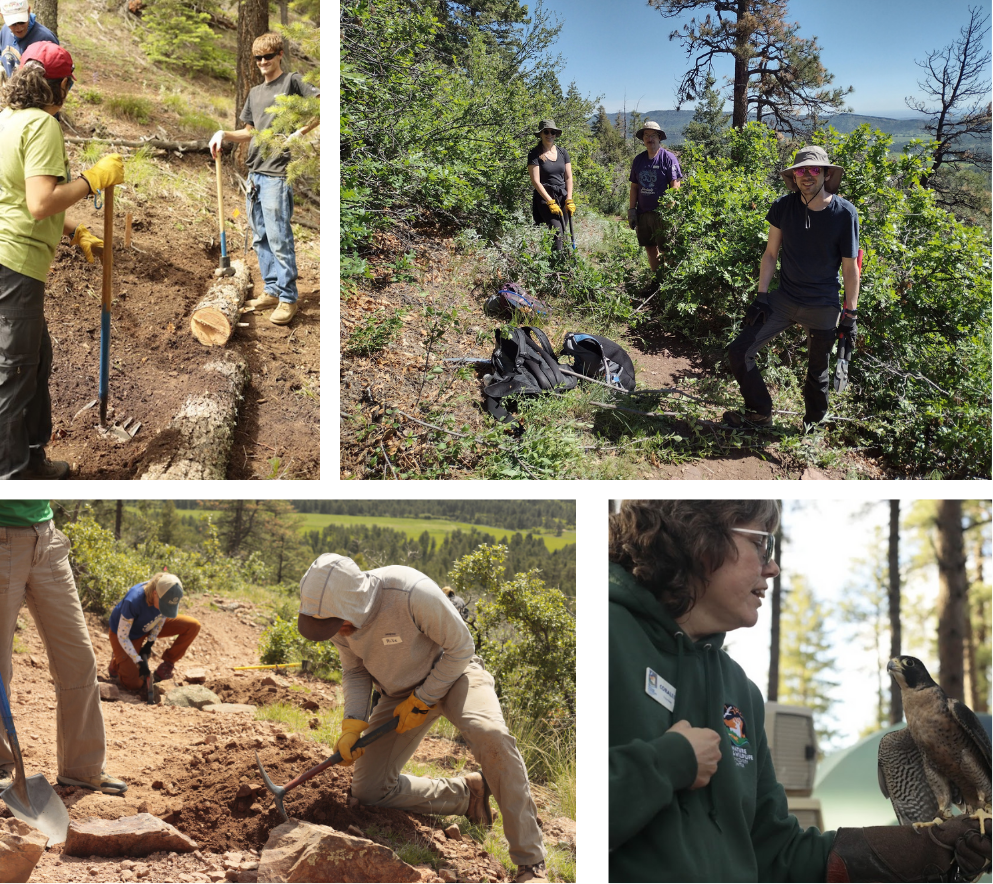 Other notes: Cell phone service is not reliable in the area. The distance between the camping area and worksite is about 1.5 mi. Volunteers will carpool to the work-site. Bathrooms are only available in the camping area, not on trail. Volunteers can expect to hike 1.5 mi. to the highest work site.